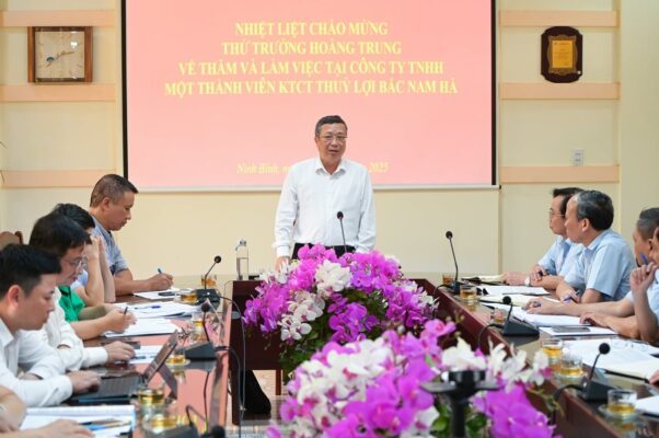 Thứ trưởng Bộ Nông nghiệp và Môi trường Hoàng Trung vừa làm việc với Công ty Khai thác công trình thủy lợi Bắc Nam Hà, tỉnh Ninh Bình.